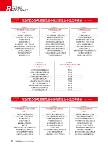 慧聪网2009年度第四届中国涂装行业十佳品牌榜单 (排名不分先后)
