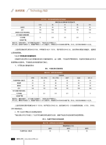 上述试验基础漆乳液为RS3788、纤维素为HER.100M,保护胶为GRAS.B。由结果知:浸泡时间越长,越容易