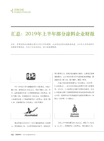 PPG 2019年上半年销售额为76.48亿美元,同比下 5.24亿欧元),其中1600万欧元归属于已终止经营业